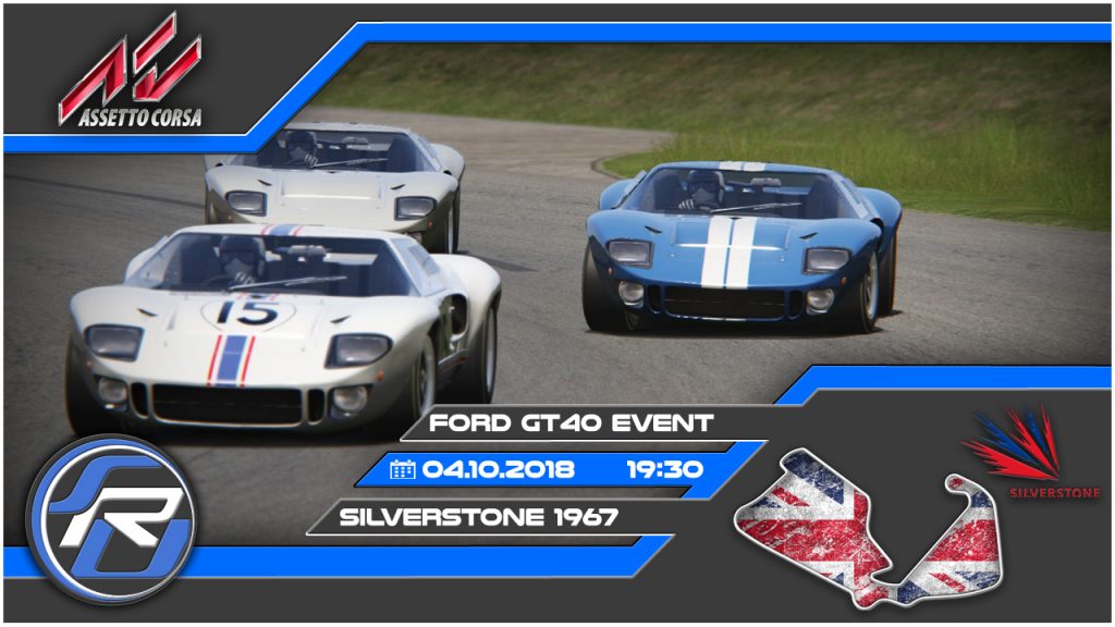 Gefahren wird unser Event in Silverstone, in der 1967er Variante, um dem GT40 ein zeitgenössisches Streckenlayout zu bieten. Das 4,7 Km Kurvengeschlängel ist deutlich schneller und flüssiger als die nachfolgenden Streckenanpassungen. Sehr flach, mit schnellen Kurven und doch einigen fiesen Ecken.