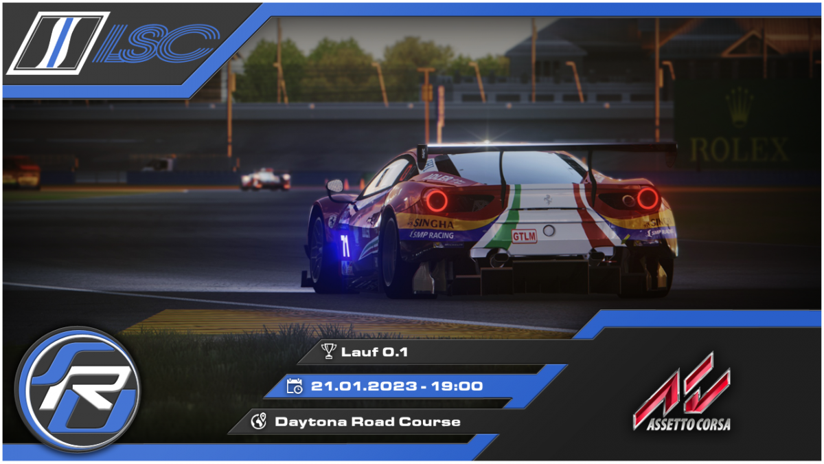 Ein zweites Testrennen auf einer eher typischen LSC-Strecke: Der Daytona Road Course ist mit seinem sehr abwechslungsreichem Verlauf ideal für erst- aber auch mehrklassige Rennen. Wir testen hier nochmals einige Dinge aus, um im Frühjahr den Serienstart ins Auge zu fassen.