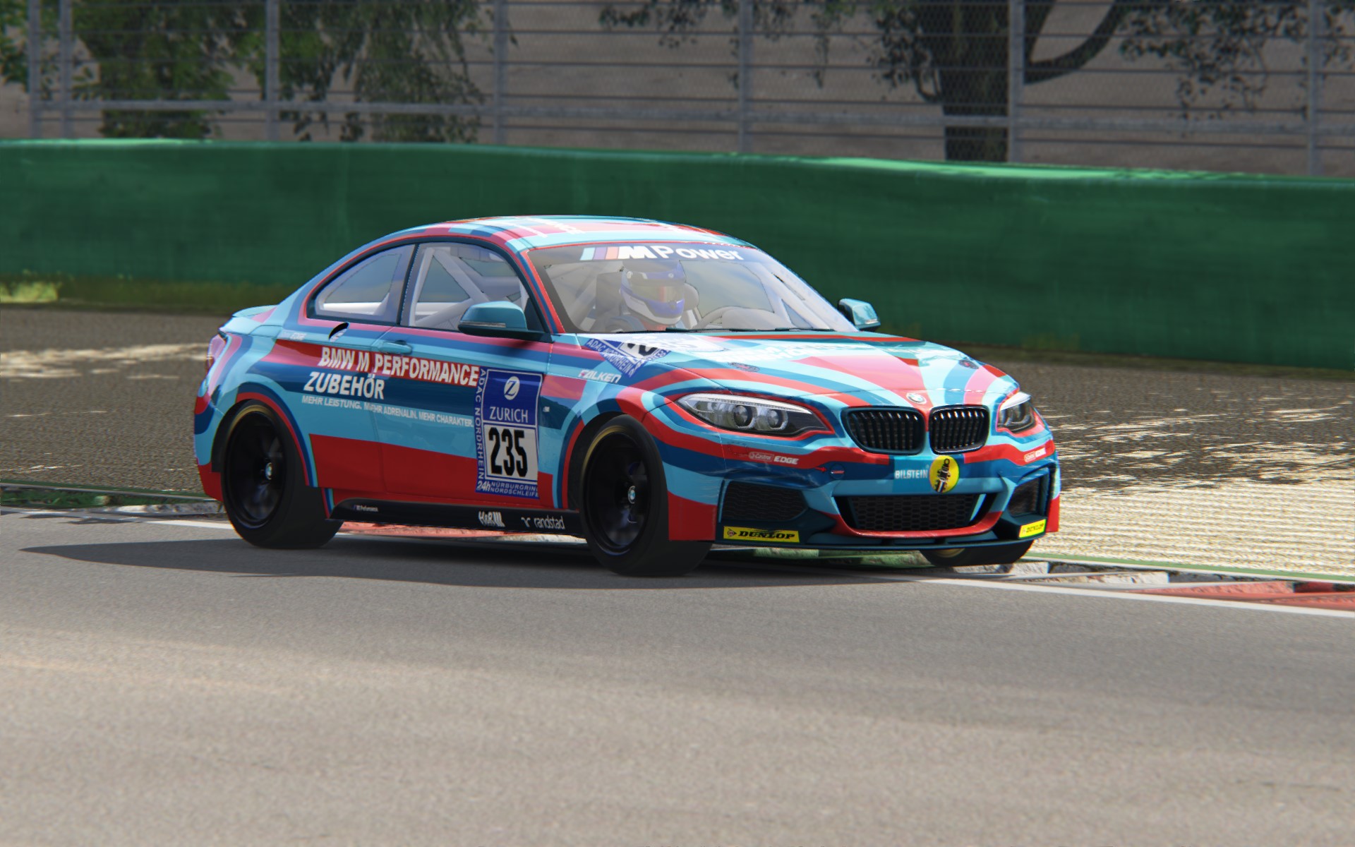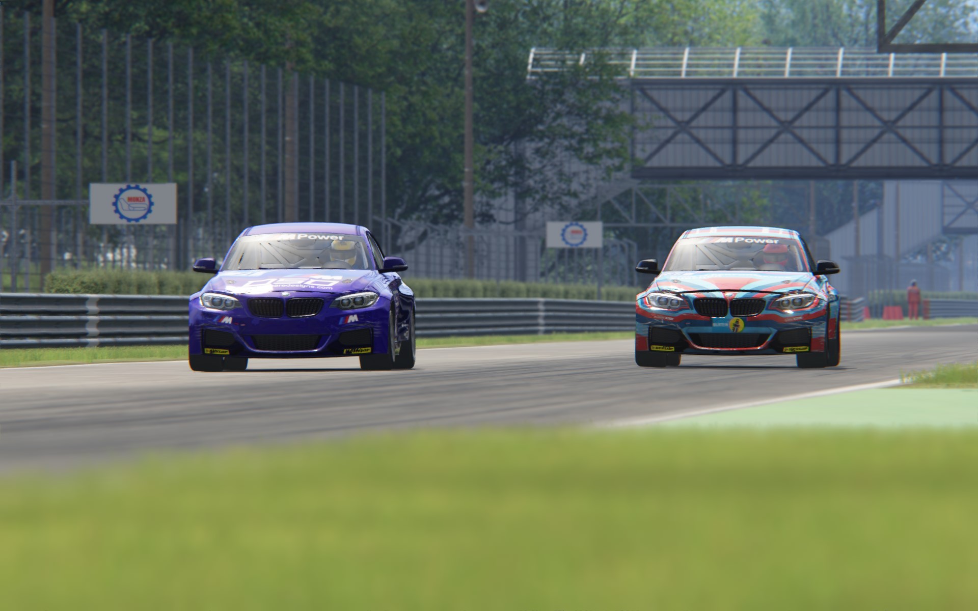 Was für ein spannender Cup-Auftakt. Der BMW 235i-Cup legte mit dem ersten Lauf in monza los, Markus Walter sicherte sich sofort die Pole vor Ralf Stingl und Hermann Feldhof. Doch schon in der ersten Kurve bremst sich Stingl kernig vorbei und übernimmt die Führung. Im hinteren Feld wird Mike Roller durch massive Traktionsprobleme ans Ende des Feldes zurückgeworfen, und Andreas Hatzmann dreht sich schon vor der ersten Kurve und übernimmt wieder die rote Laterne.
