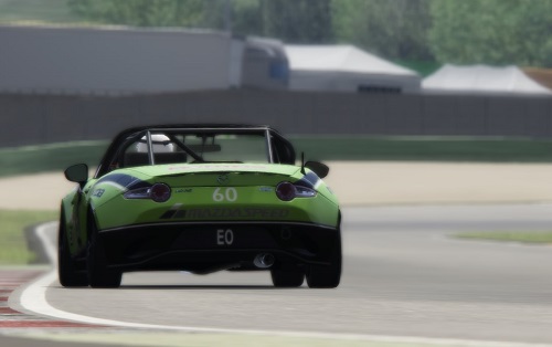Ein Assetto-Update kurz vorm Rennen sorgte noch für etwas Verwirrung, doch mit dem Erlöschen der Startampel behauptete Polesetter Oses souverän seine Führung. Doch Hintermann Markus Rörsch, auch genannt “der Magnet”, klammerte sich an seine Fersen. Im hinteren Feld zog Urs Nüssle keck rechts an seinen Vorderleuten vorbei und machte etliche Plätze gut. Gert Ackermann und Bernhard Janßen starrten nur noch staunend in die kleiner werdenden Rücklichter.