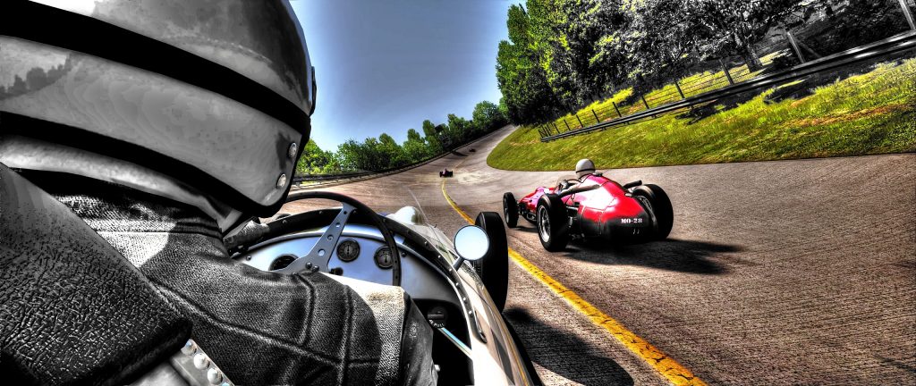 Monza. Wir schreiben das Jahr 1966. Der Mensch war noch nicht auf dem Mond. Aber verrückt genug, es zu wagen. Beispiel gefällig? Rennen fahren mit einem offenen Maserati 250F 12 Zylinder. 310 PS. Um den Fahrer 650 kg ganz dünnes Blech. Sicherheitsgurt? Drückt nur auf dem Flachmann in der Innentasche. Überrollbügel? Kann man sich den Kopf stoßen, zu gefährlich. Feuerfeste Kleidung? Benzingetränkte Baumwolle brennt doch nicht so schnell. Trotz dieser, sagen wir vorsichtig “Risiken”, fanden sich fast 20 internationale Fahrer wieder ein, um mit diesem wilden Rennwagen die legendäre Steilkurve von Monza jener Tage abzufahren. Vom wilden Finnen bis zum hektischen Schweizer, vom hochkonzentrierten Deutschen bis zum feurigen Südländer – die Mischung an der Startampel war wie ein Sack Flöhe mit Durchfall auf der Quarantäne-Station.