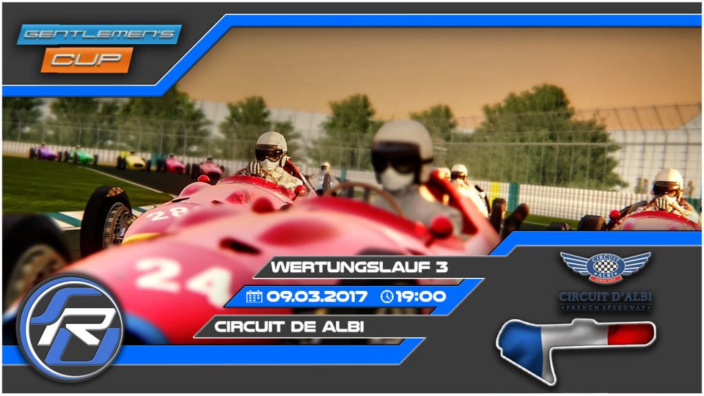 Am Mittwoch, den 09.03.2017 geht es los, ab 19:00 Uhr habt ihr zwei Stunden Zeit, einen Qualifying-Zeit in den Asphalt zu brennen. Um 21:00 Uhr geht das Rennen los, eine halbe Stunde wilde und faire Fights in Frankreich, in einem italienischen Klassiker mit arabischem Sprit. Was vor allem wichtig ist: Stil. Haltung. Gelassenheit. Wir sind ja Gentlemen.