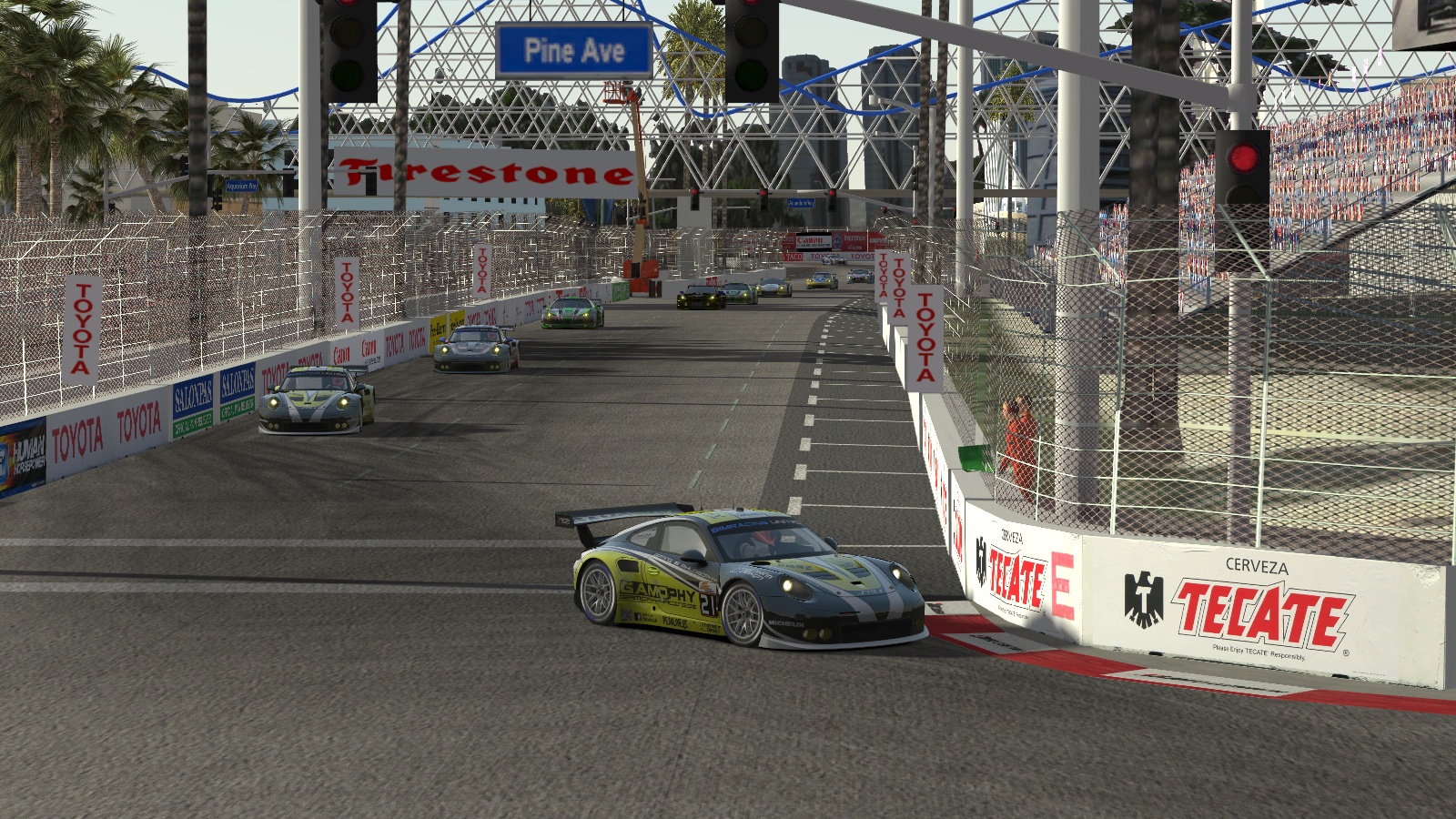 Eng, wellig und verdammt gefährlich; so heimtückisch und herausfordernd präsentierte sich der Long Beach Grand Prix Circuit zur Austragung des 10. Wertunglaufes der aktuellen GT Pro Series. Nicht, dass es schon schwierig genug wäre, die Hatz über die Straßen von Long Beach zu überstehen. Nein, der Aufbau des Kurses zeigte zahlreiche Kanten entlang der Streckenbegrenzung, die dem einen oder anderen Teilnehmer zum Verhängnis werden sollten. Ganz offensichtlich begünstigte die Streckenführung diejenigen Teilnehmer, die sich mit einem heckgetriebenen Fabrikat in die Meisterschaft eingeschrieben hatten. So platzierten sich in der Qualifikation Manuel Gogeissl und Silvio Striegler für GAMOPHYRACING.DE I sowie Marcus Gerzack für NoLimit Motorsport II auf den besten Startplätzen. Auch Neueinsteiger Tim Ullrich konnte sich mit seinem Elfer für Seawolf Netrace Motorsport auf Rang 8 qualifizieren.