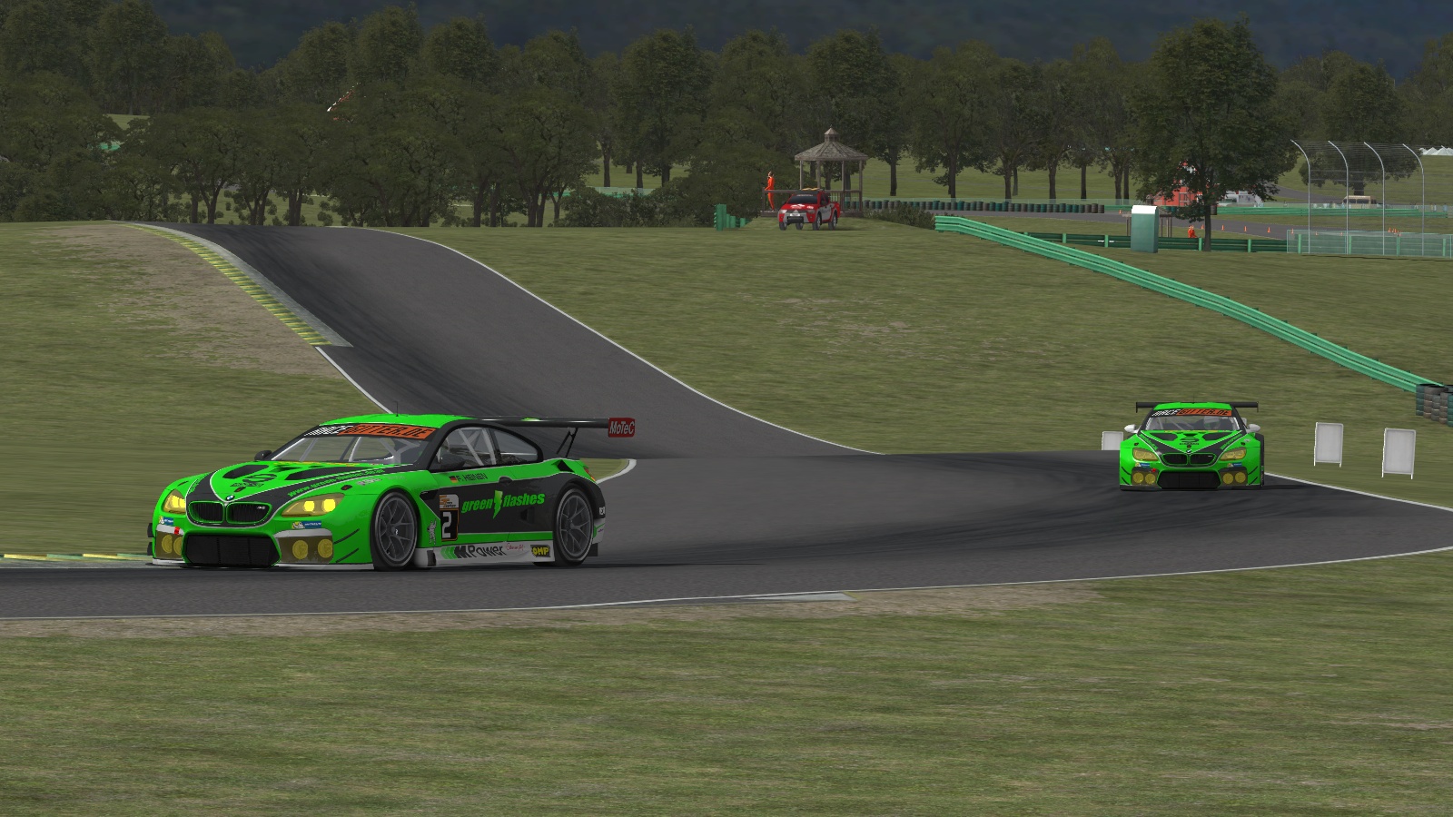 Nach 21 Umläufen begannen die regulären Boxenstops der “Reifenwechsler”, was wie so oft das Klassement zwischenzeitlich durcheinanderwürfelte. Noch ohne Halt bei der MRS-SimRacing-Crew drehte Spitzenreiter Andreas Schmich weiter seine Runden; mittlerweile 24 sek. vor den Green Flashes-Piloten Felix Heinen und Lars Nowack. Der Schnellste, der bereits seinen regulären Stop absolviert hatte, war Sascha Glatter auf Rang 4 mit weiteren 13 sek. Rückstand. Kaum erwähnt, schon war die mutmaßliche Spitzenplatzierung des Auftaktsiegers beim Teufel. Ein Dreher, der Glatter den Heckflüger kostete, bedeutete natürlich einen herben Rückschlag. Beim zusehens immer glückloseren Glatter folgten 2 weitere, unplanmäßige Stops; Resultat: nur P20 in Alton. Als die Besuche der Boxenmannschaften im gesamten Feld nach 60 Minuten erledigt waren, schienen die vorderen Plätze schon festzustehen. Schmich führte komfortabel mit 12 sek vor Nilsson, gefolgt von Heinen und Conny Näslund ebenfalls schon fast alleine unterwegs.