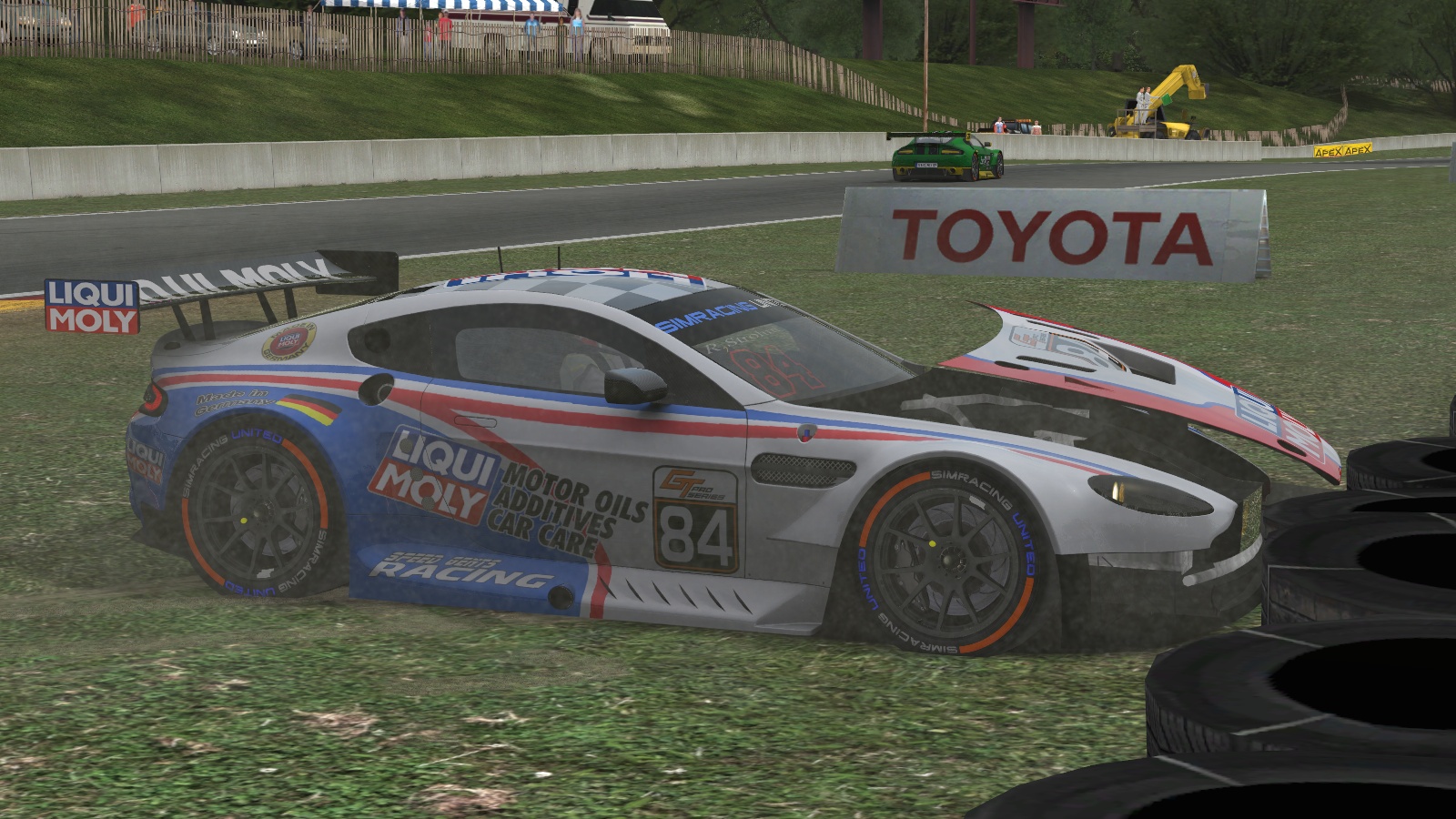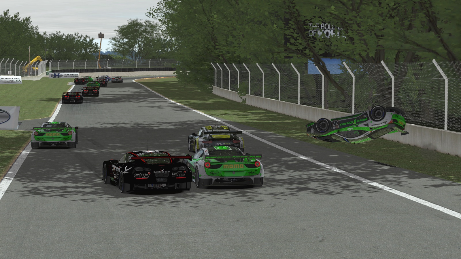In Turn 5 war es ein Verbremser Markus Walters, der ihn hinter den Hauptkonkurrenten Bräutigam auf die 10. Position zurückwarf. In Runde 2 gönnte sich Alex Bräutigam einen mehr oder minder folgenlosen Ausritt ins Kiesbett; kein Schaden, aber Rang 12. Walter derweil schon wieder Sechster. Runde 5: Keine Spur von Ruhe, Strohm ausgangs Turn 6 in den Reifenstapeln und Platz 3 war passé. Runde 9: Ein Fahrfehler von Carsten Schulze lies James Duku aufrücken. Beim Versuch von Markus Walter am Ende von Hurry Downs ebenfalls durchzuschlüpfen, kam es zur Kollision. Schulze nun auf der 7, Walter nur noch Zwölfter. 2 Runden später war der Frust möglicherweise zu groß. Markus Walter fuhr an die Box und gab auf. Damit stand frühzeitig fest: